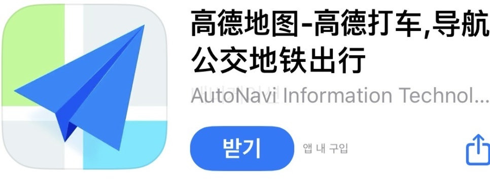 고덕지도(Amap, 高德地图)는 중국에서 가장 많이 사용되는 지도 앱이에요.